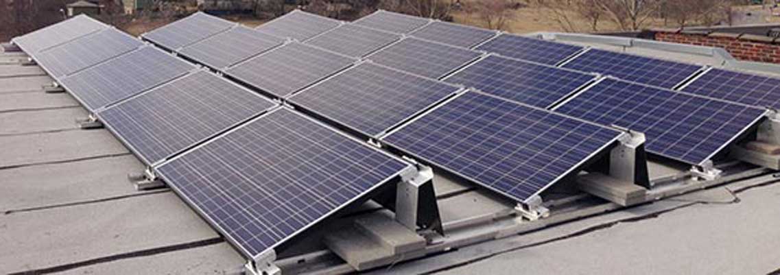 This above system was installed on a 6 unit apartment building to offset the common space electric loads. We typically install our systems with steeper angles than most of our competition because they will generate more energy this way. It costs a little more up front, but pays off big time over its lifetime. Good Energy Solutions designs for efficiency.