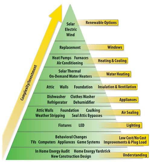 Use this hierarchy of possible energy improvements and solutions as a guide for your home or business.