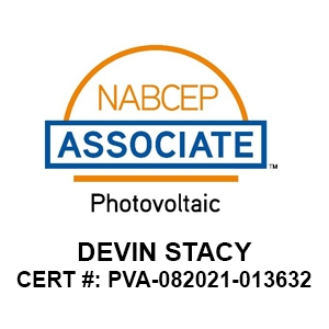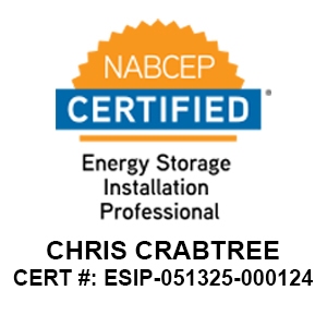 Chris began as a residential and commercial PV installer. Became lead installer within the first year of employment, then earned the NABCEP PV Installation Professional Certification in 2016 and a Kansas Journeyman’s License in 2021. He also earned his NABCEP ESIP Certification in 2025.