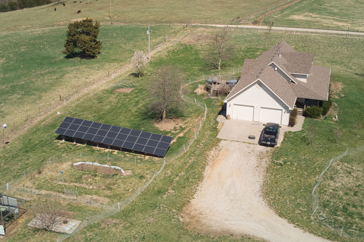 The owners of this home in Valley Falls, Kansas wanted to save money and reduce their carbon footprint using solar energy. We worked with them to design and install this ground-mounted grid-tied solar panel system utilizing 33 327 W high-performance modules.