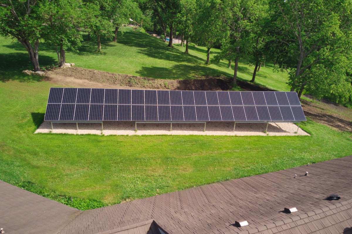 The owners of this property in Lawrence, Kansas wanted to save money and reduce their carbon footprint with solar power. We worked with them to design this ground-mounted grid-tied solar panel system utilizing 40 high-performance modules. This system helps the owners offset their monthly electrical bills.