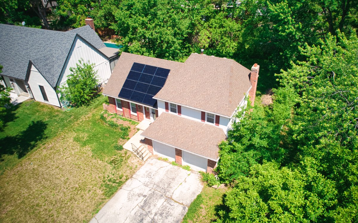 The owner of this home had Good Energy Solutions design and install a new solar panel system on his Overland Park home. We placed 12 SunPower solar panels on his south-facing roof to help offset his monthly electric bills.