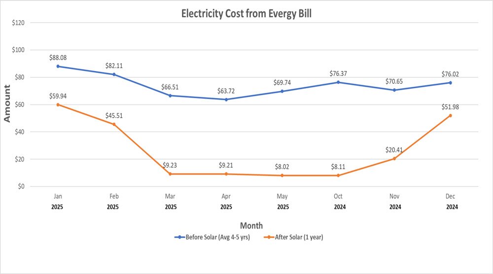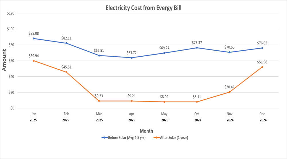 The homeowners have been tracking how much their solar panels have saved them each month since the system was installed in October 2024.