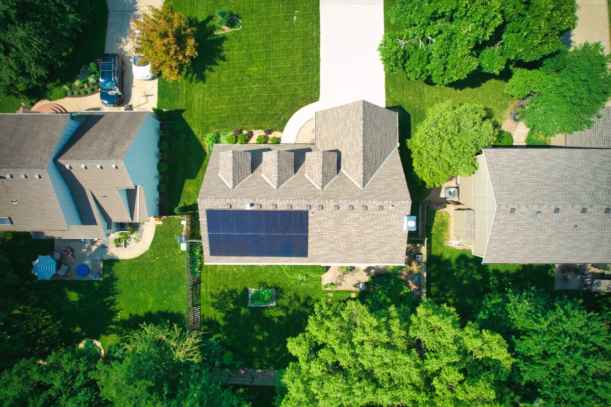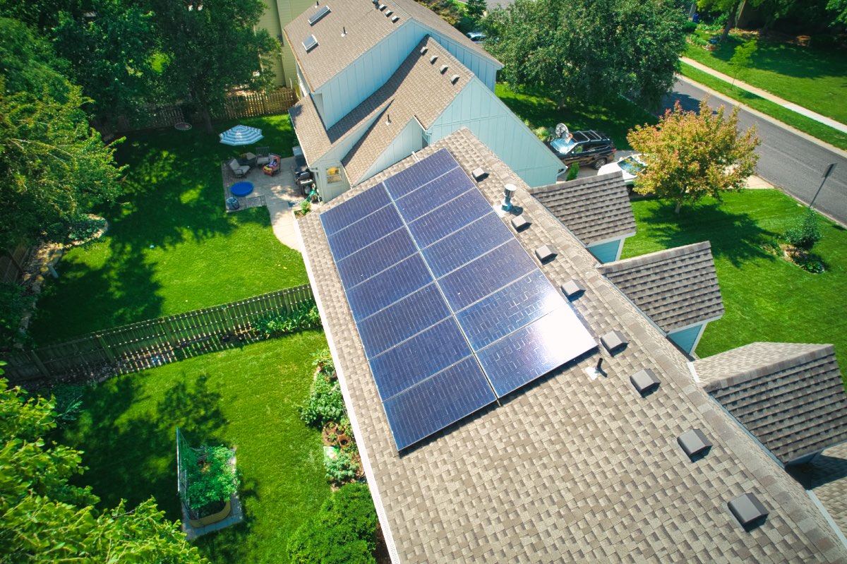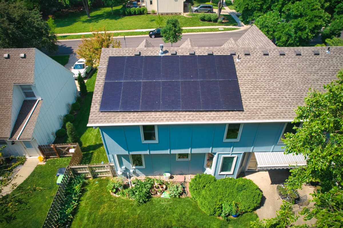 The owners of this home in Lenexa, Kansas, wanted to save money on their monthly utilities. We worked with them to design and install a roof-mounted, grid-tied solar panel system featuring 14 all-black, high-performance REC modules.