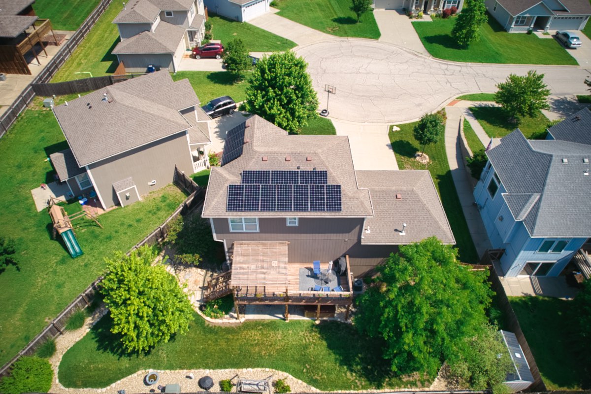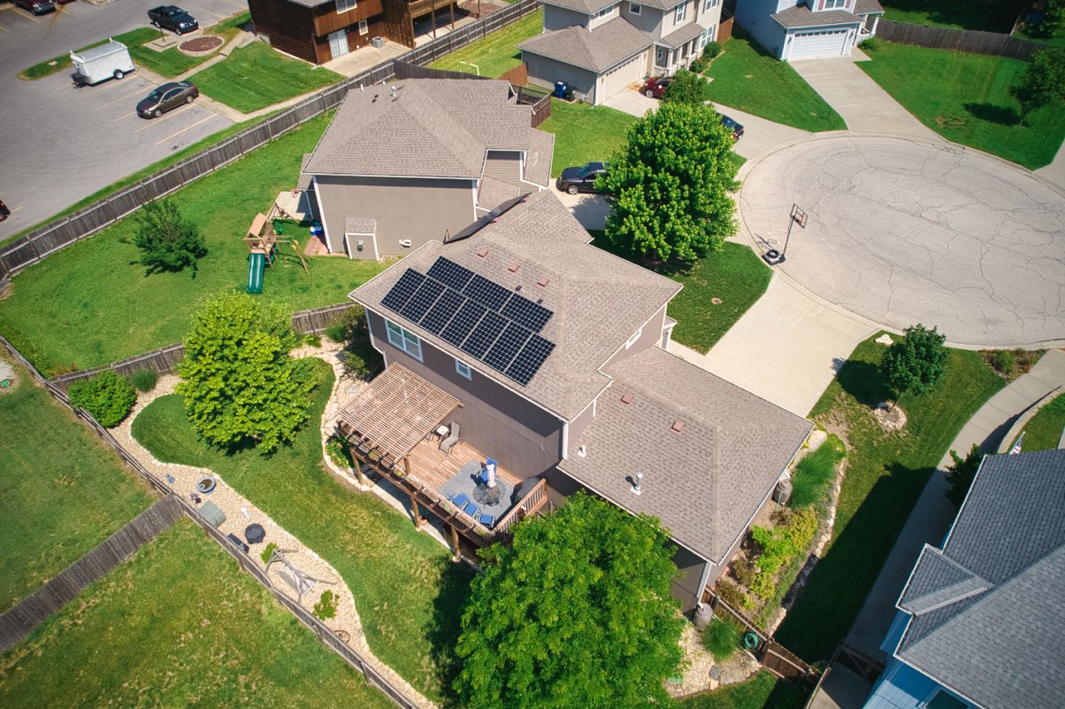 The owner of this house wanted to make a positive change to their carbon footprint and save money on their monthly electricity bills by having Good Energy Solutions design and install 14 Maxeon solar panels on the roof of their Lawrence home.