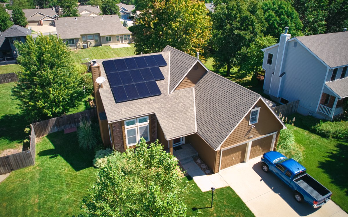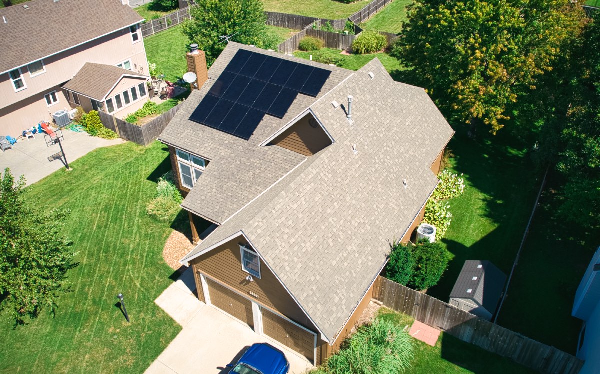 The owners of this house wanted to make a positive change to their carbon footprint and save money on their monthly electricity bills by having Good Energy Solutions design and install 15 Maxeon solar panels on the roof of their Lawrence home.