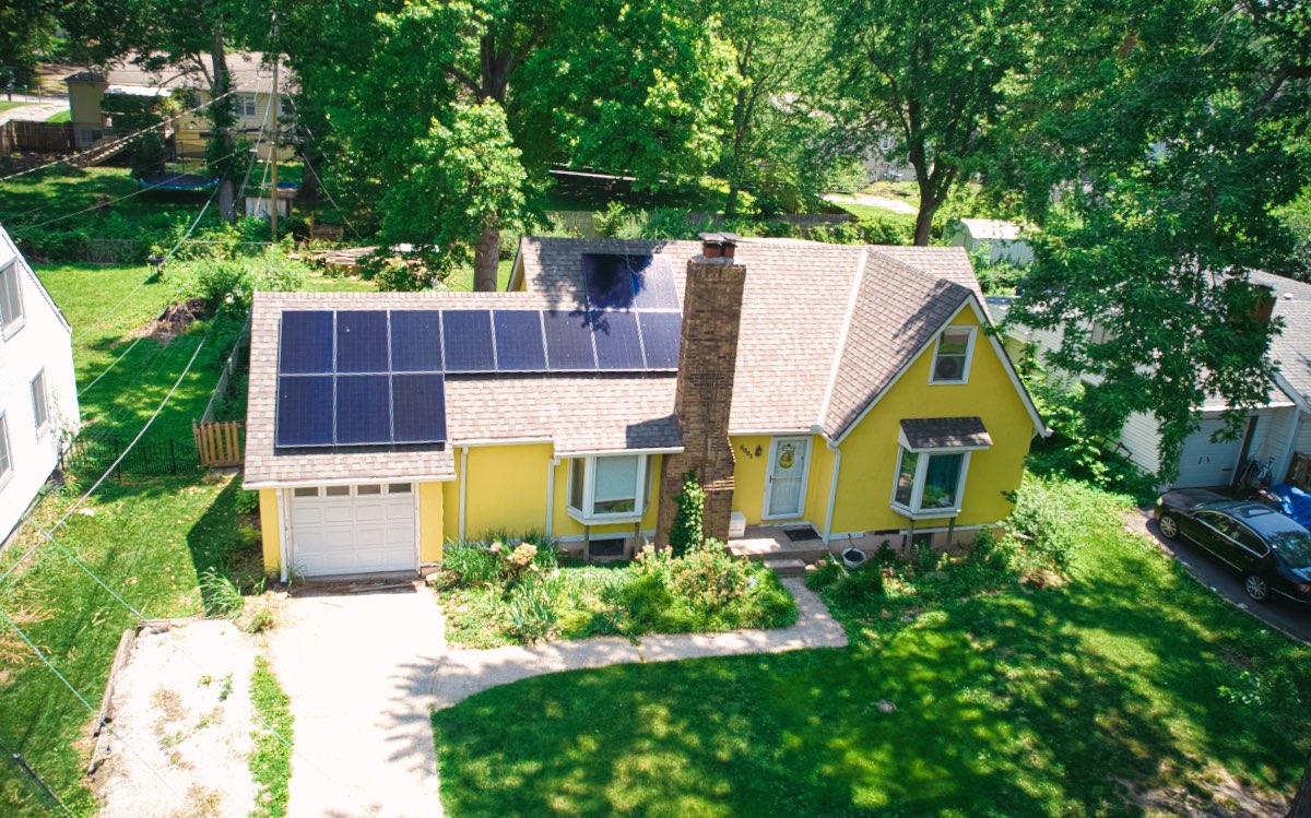 We installed 13 of the panels on the on the front-facing side of the roof. The remaining 6 panels were installed on a custom-made awning that also provides shade for the south-facing side of the home. This will give the home steady and efficient energy generation throughout the day as the sun passes over the property. We expect this Kansas City solar panel installation to provide clean electricity for decades to come.