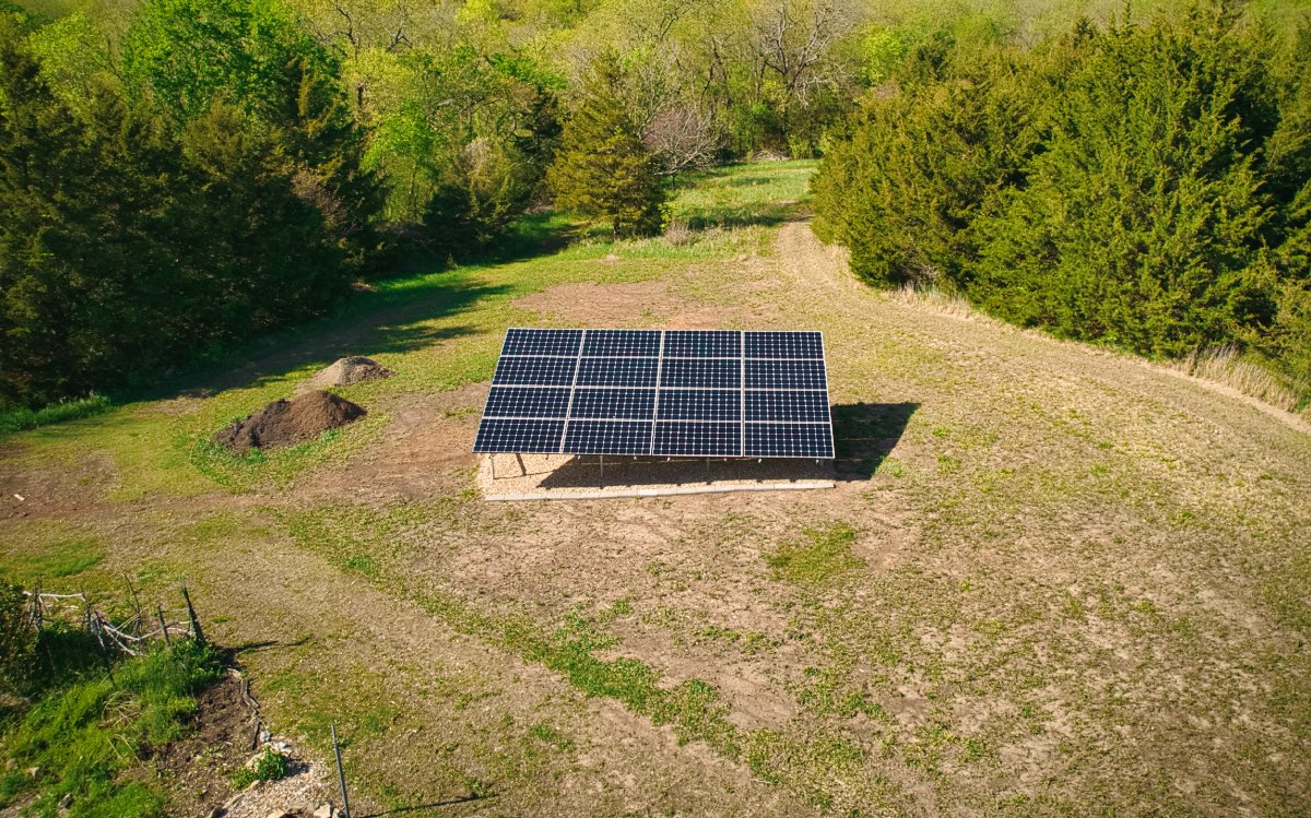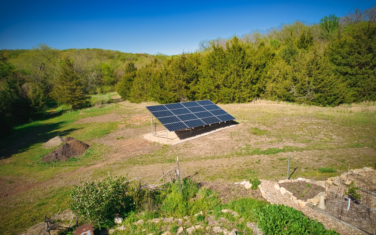 The owners of this property in Perry, Kansas wanted to save money and reduce their carbon footprint with a solar power installation. We worked with them to design this ground-mounted solar panel system utilizing 16 410 W high-performance modules. We added this ground mount to an existing solar panel system on the house from another company.
