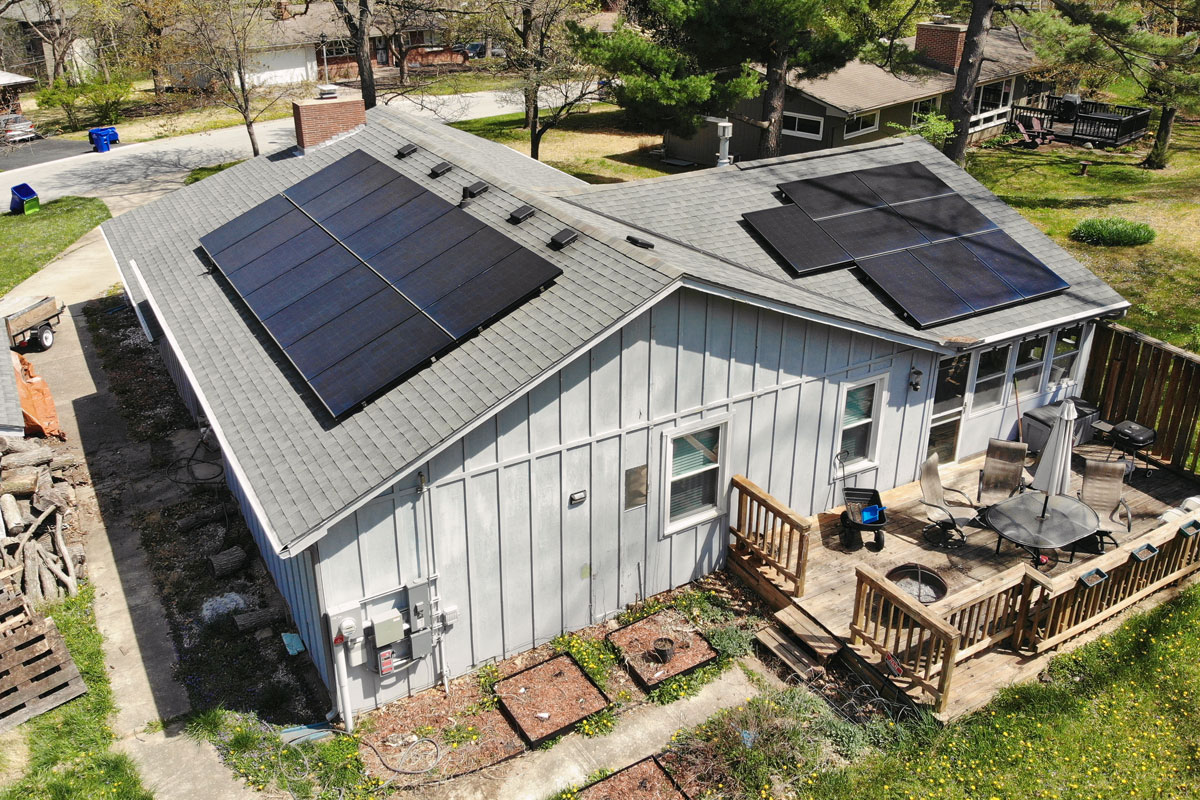 The owners of this home in Merriam, Kansas wanted to save money and reduce their carbon footprint with the power of solar. We worked with them to design this roof-mounted grid-tied solar panel system utilizing 22 335 W high-performance modules.