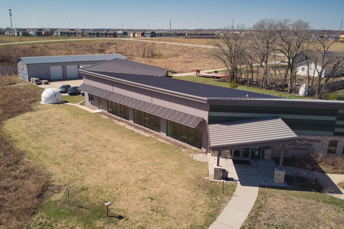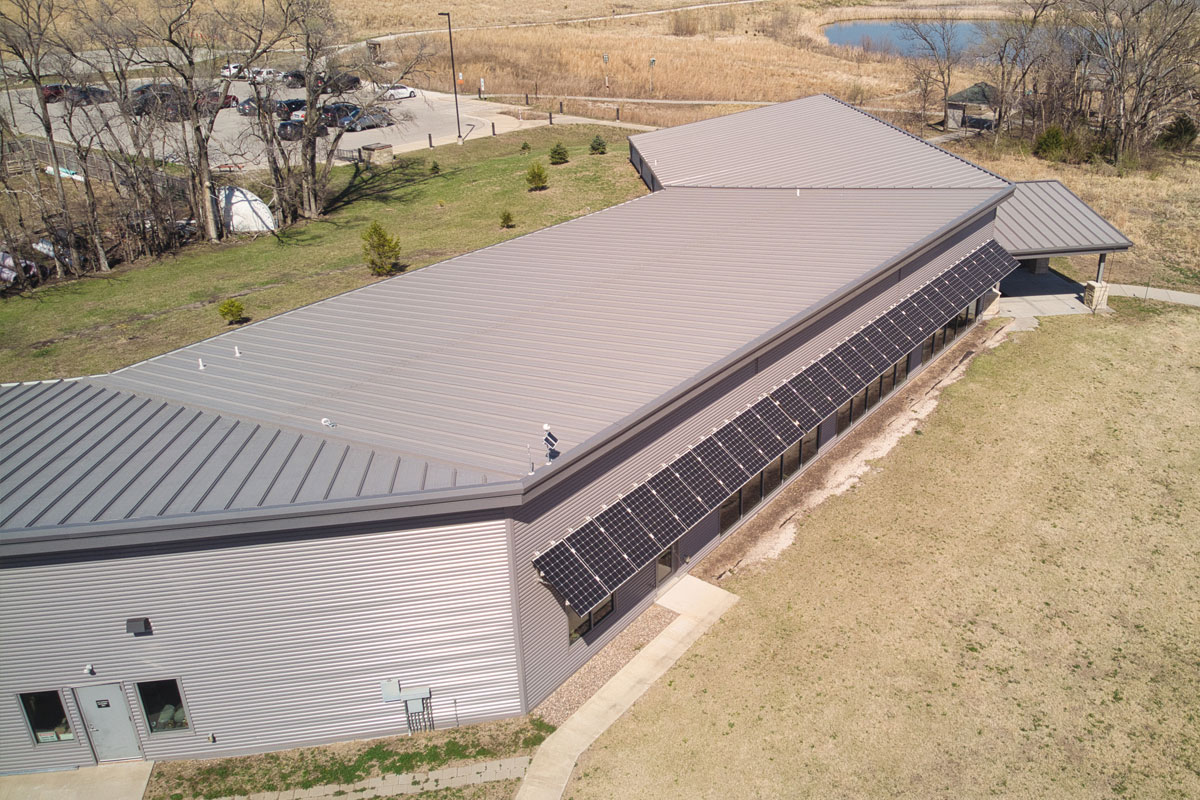 Located on the south side of Lawrence, the Baker Wetlands features over 10 miles of trails, several observational blinds, boardwalks and an educational Discovery Center. Good Energy Solutions installed 29 solar panels on the 11,000 square foot Discovery Center in 2016.