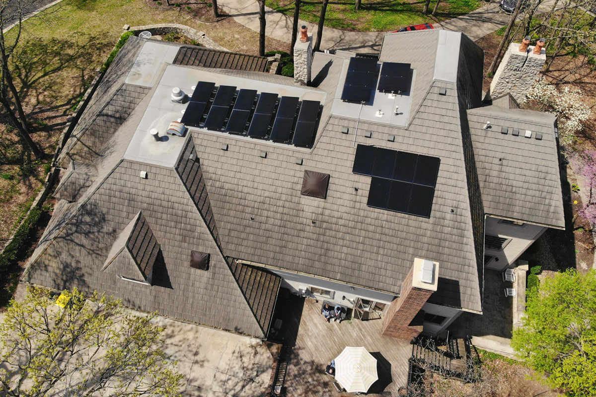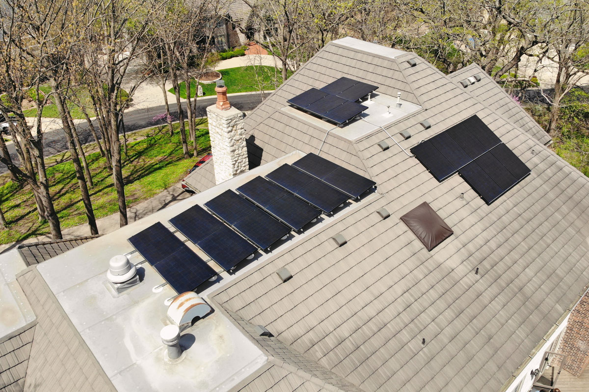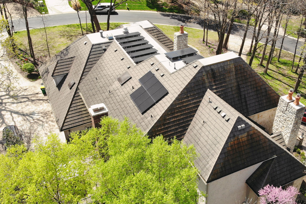 The owners of this home in Lenexa, Kansas wanted to save money and reduce their carbon footprint with the power of solar. We worked with them to design this roof-mounted grid-tied solar panel system utilizing 24 350 W high-performance modules.