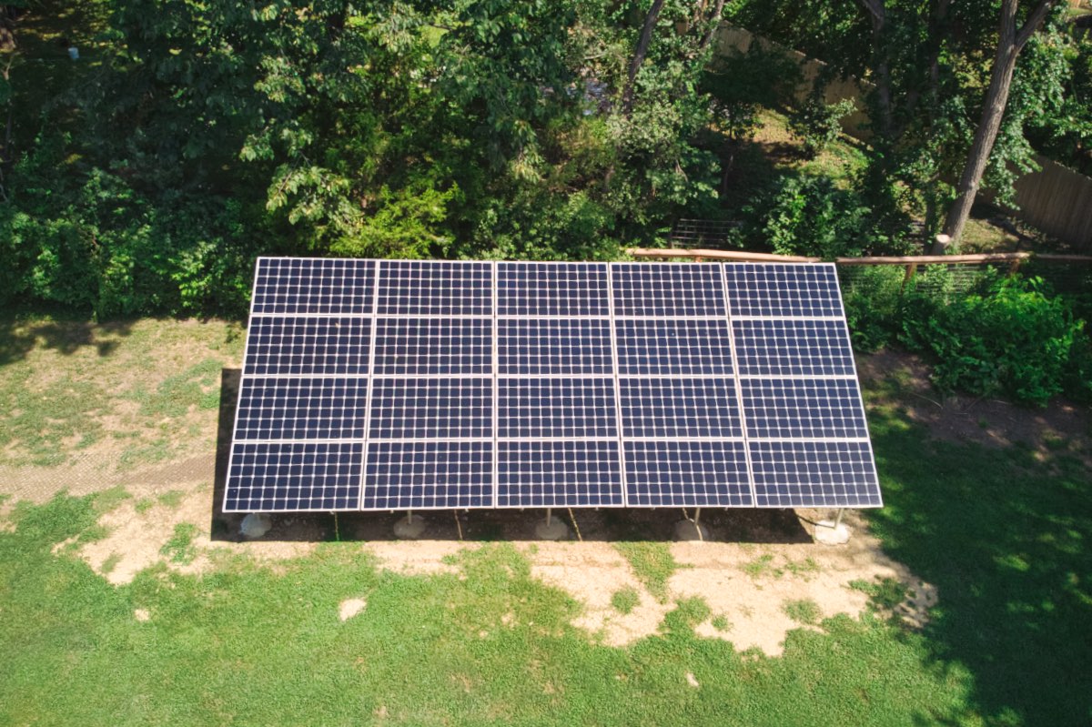 The solar installation sits in the backyard of the owners’ home, facing towards the south. This Lawrence solar installation will produce clean, inexpensive, renewable power for the homeowners for decades to come.