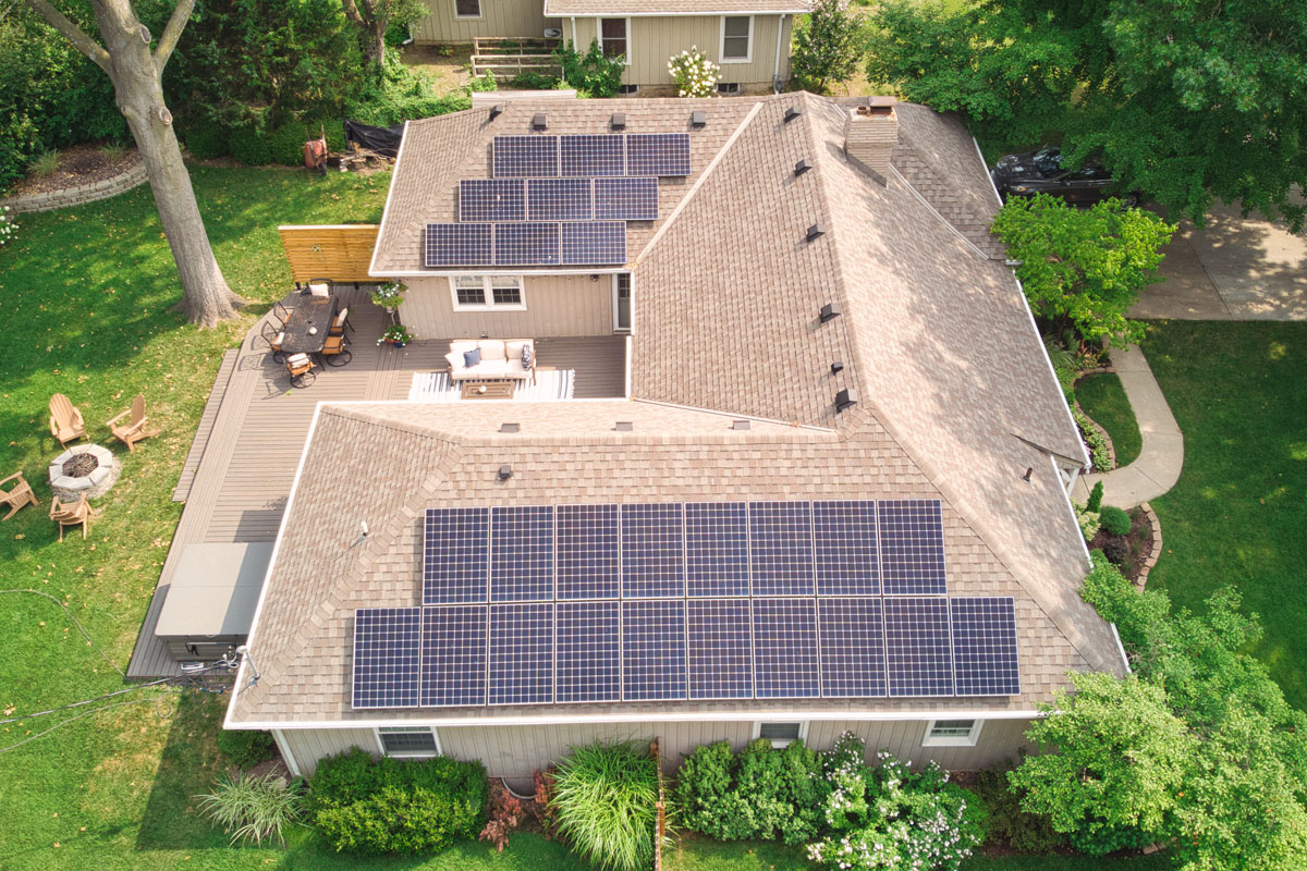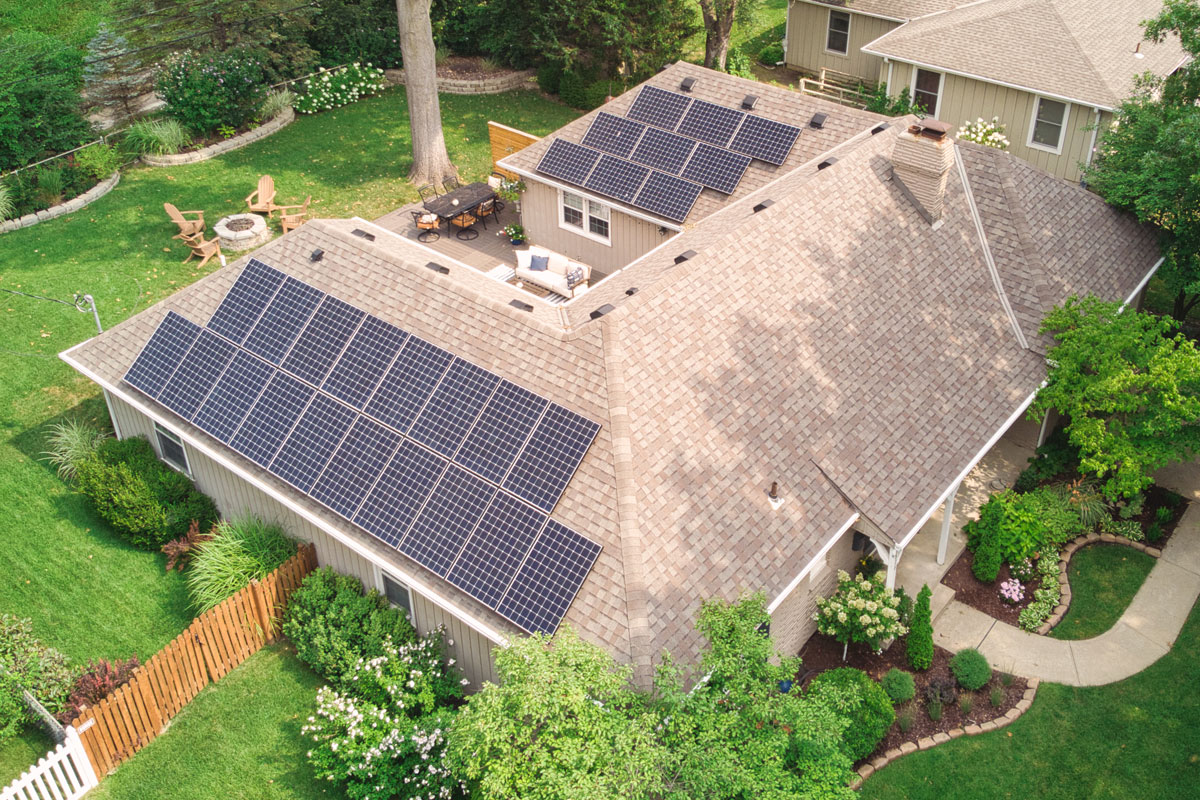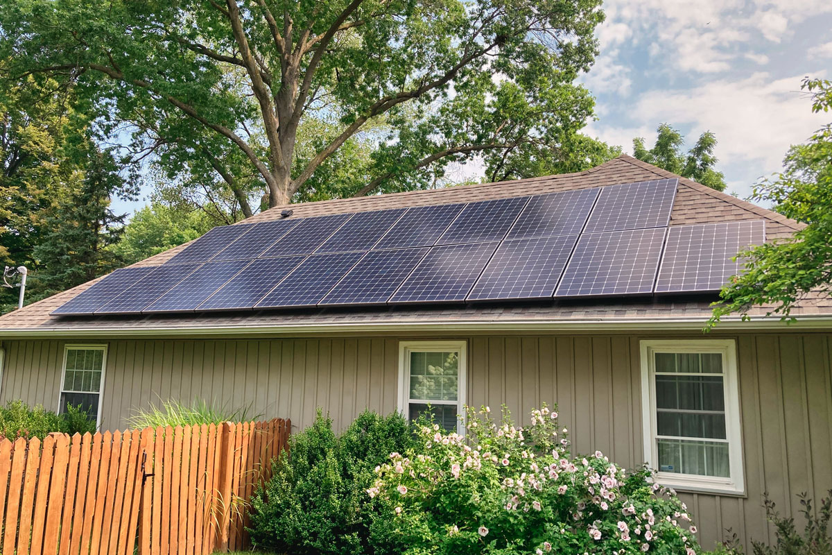 The owners of this home in Prairie Village, Kansas wanted to save money and reduce their carbon footprint with solar power. We worked with them to design this roof-mounted grid-tied solar panel system utilizing 27 SunPower 327 W high-performance modules.