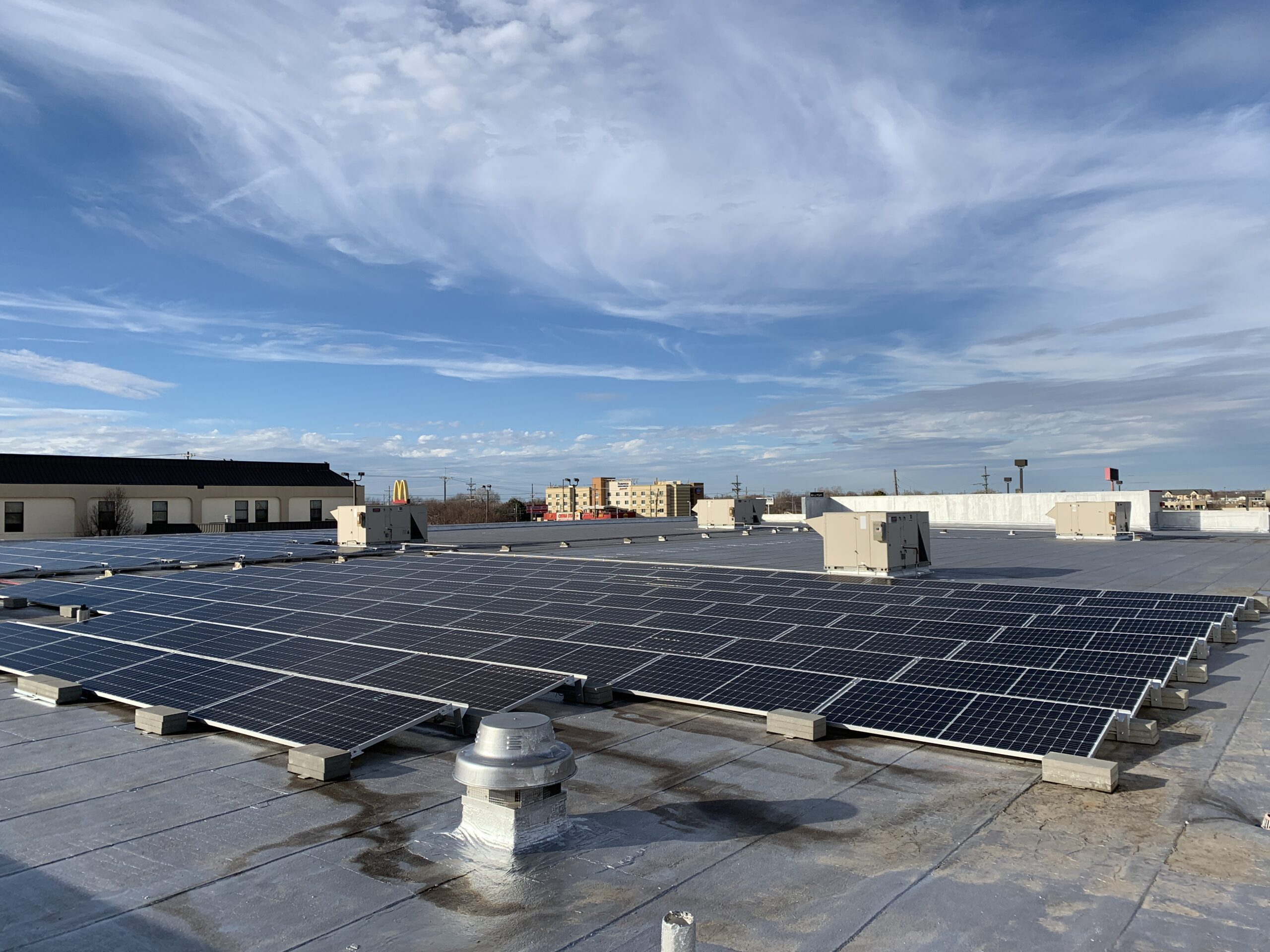 The system will also help shade the roof of the warehouse from the hot Hutchinson sunshine during the summer, effectively lowering his space conditioning loads.