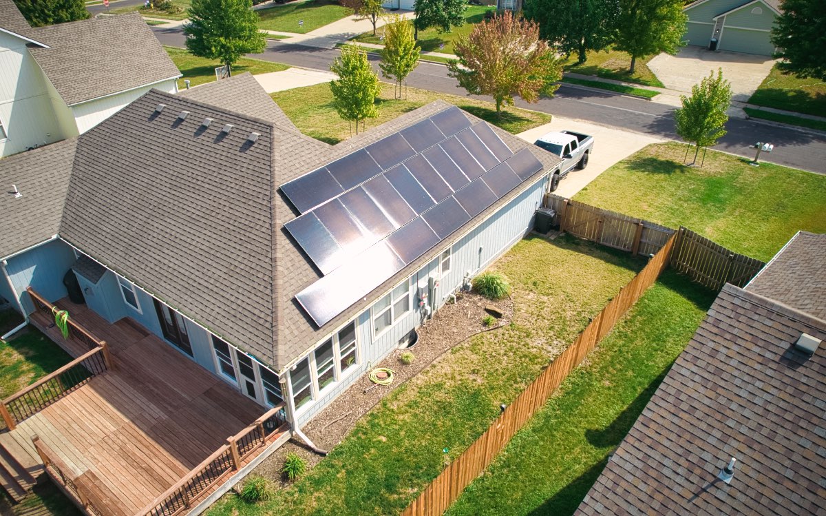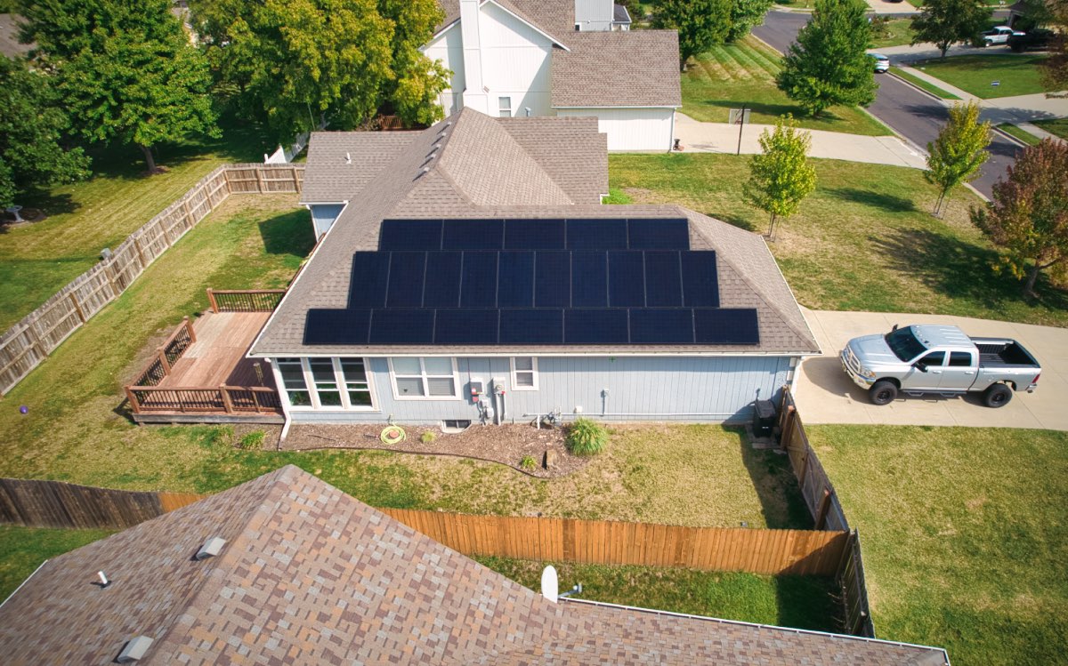 The owners of this home in Baldwin City wanted to save money and reduce their carbon footprint. We worked with them to design this 9.02 kW roof mounted grid-tied solar panel system utilizing 22 Maxeon high-performance modules.