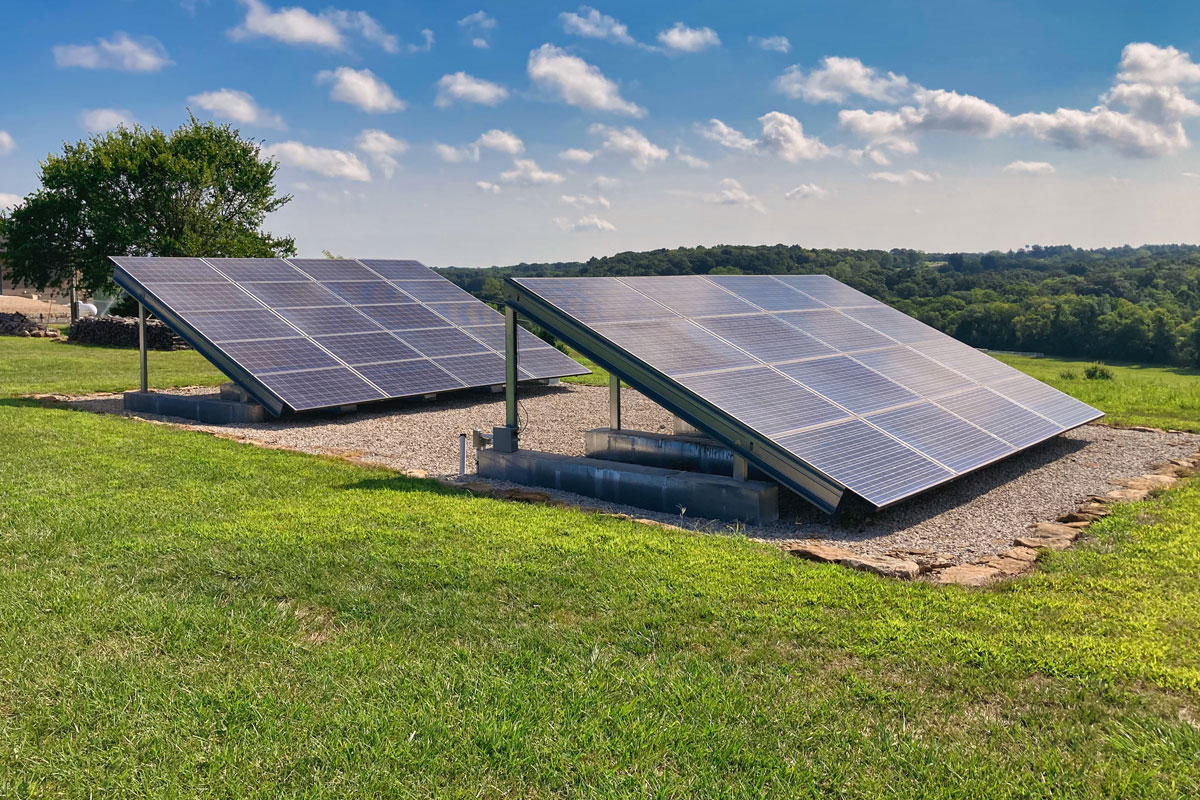 The owners of a rural home in Lawrence, Kansas wanted to save money and reduce their carbon footprint with solar power.  We worked with them to design this ground-mounted grid-tied solar panel system utilizing 36 260 W high-performance modules.  This system helps the owners offset their monthly electrical bills and it’s one of the early residential ground-mount systems that we built in 2016.