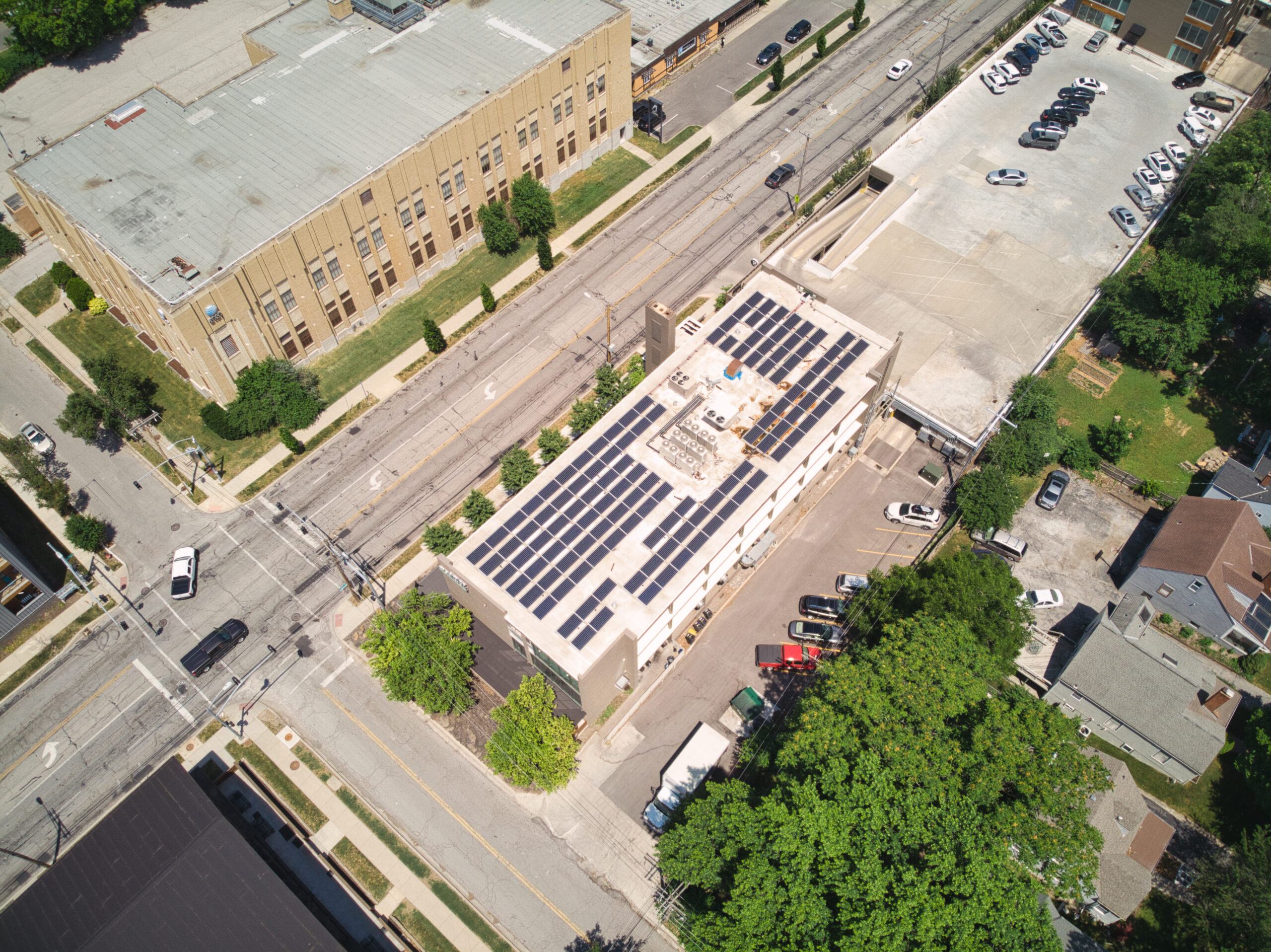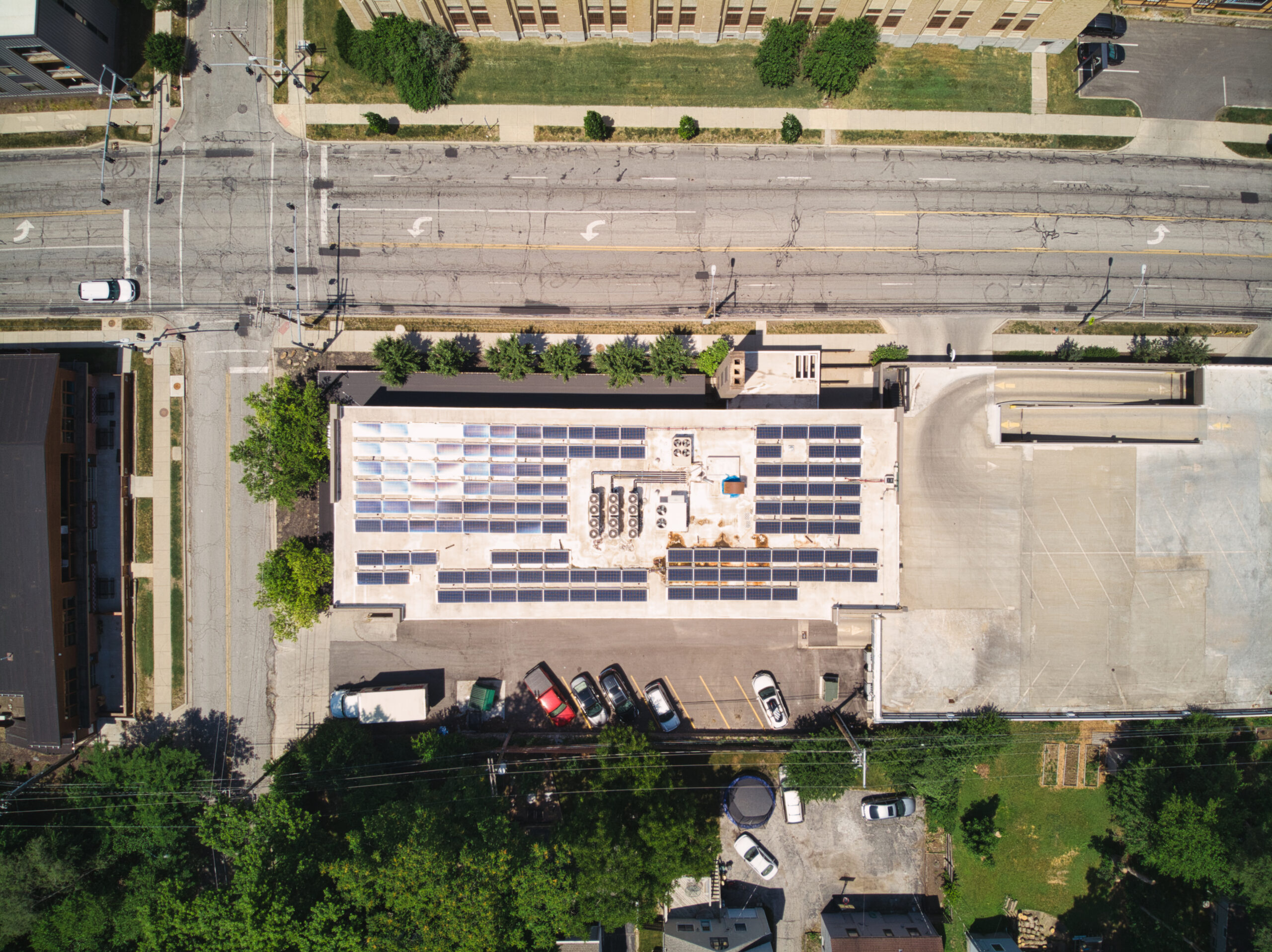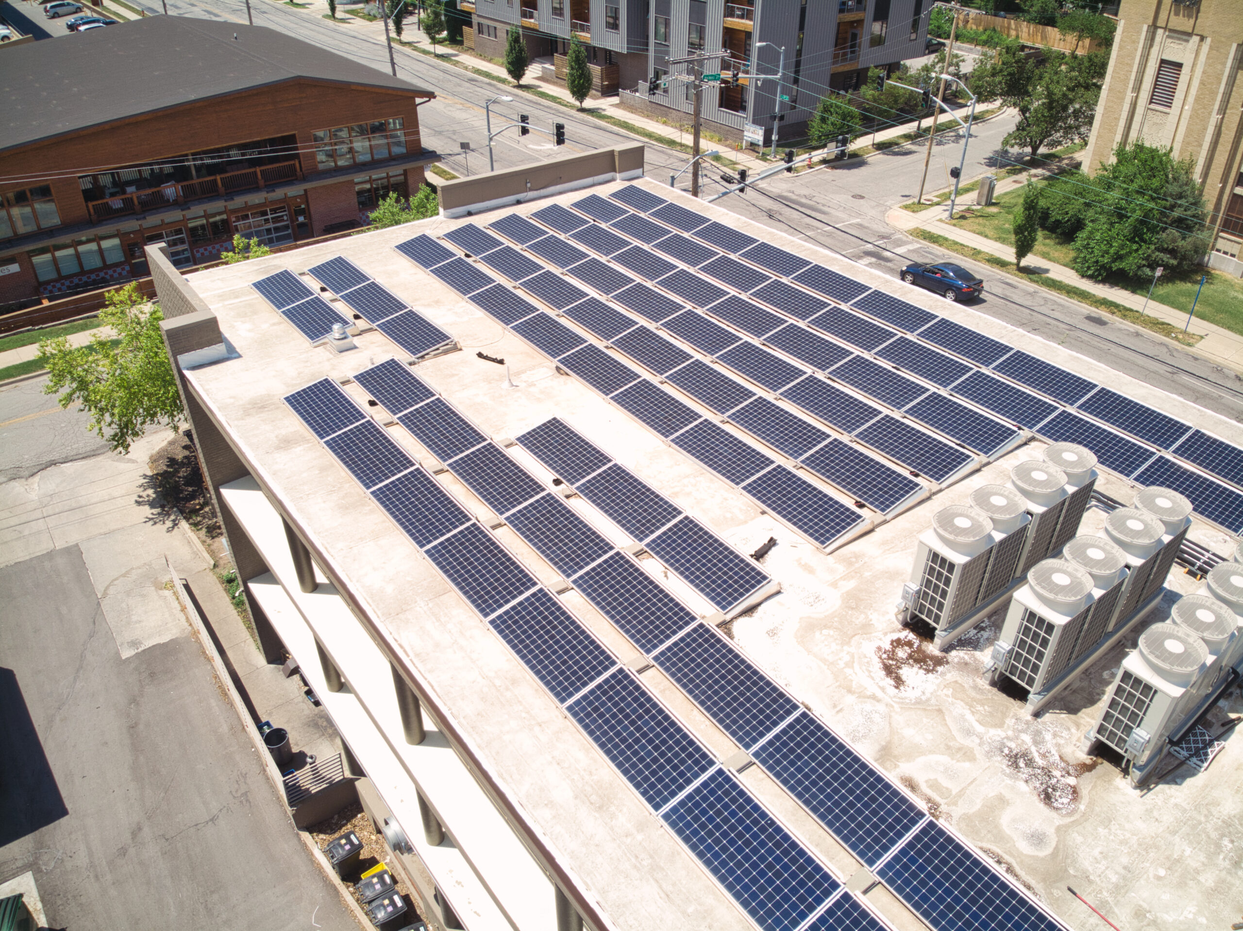 The owners of this office building in Kansas City, Missouri wanted to save money and reduce their carbon footprint. We worked with them to design this 41.8 kW grid-tied, roof-mounted solar PV system utilizing 96 SunPower 435 Watt modules with SMA inverters.