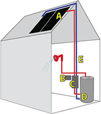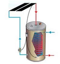 Drainback systems are effective and reliable. The water drains back into a reservoir when the sun isn’t providing enough energy to heat water in the collector. When the temperature reaches a set point in the collector the pump turns on and circulates the water through the panel. When the temperature meets the specified temperature the pump turns off and the fluid drains down into the reservoir. In this manner the heat transfer fluid is never exposed to cold temperatures and never freezes.